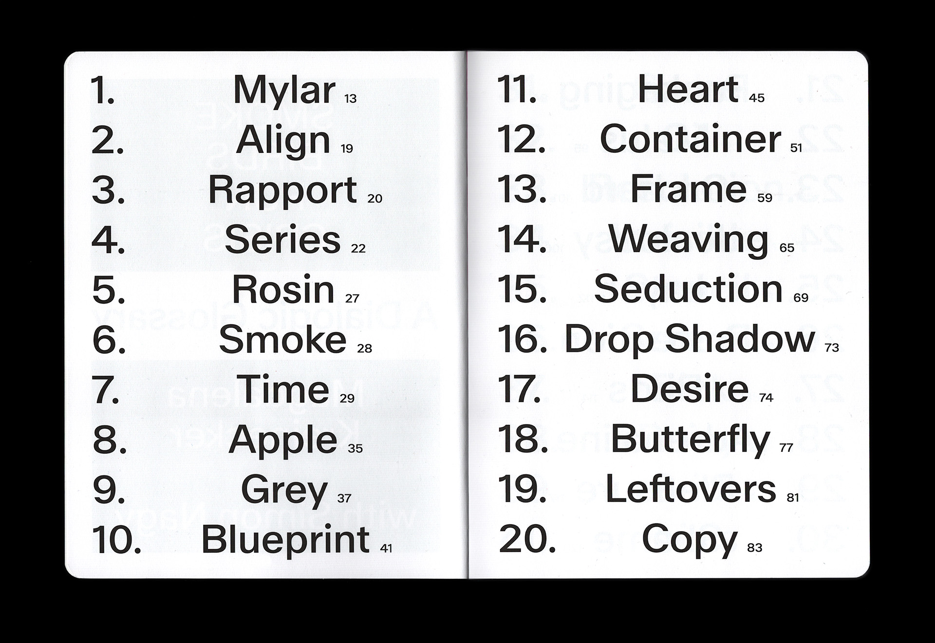“Language is always there: before and after and all over the place. We’re not writing this glossary for the fun of it. But omnipresence and causality are two different pairs of shoes. The works play cat and mouse with these shoes, as they present the viewer with the most commonplace and charged symbols: apples and hearts. But they are woven into such intricate conjuring strategies that even these otherwise so unshakeable archetypes lose their logical narratives. They demand new patterns with which to tie the shoes: ways of looking at things (and thus: ways of acting, ways of being) that cannot just be pigeonholed in well-known and familiar language, but which much rather shimmer indecisively.”